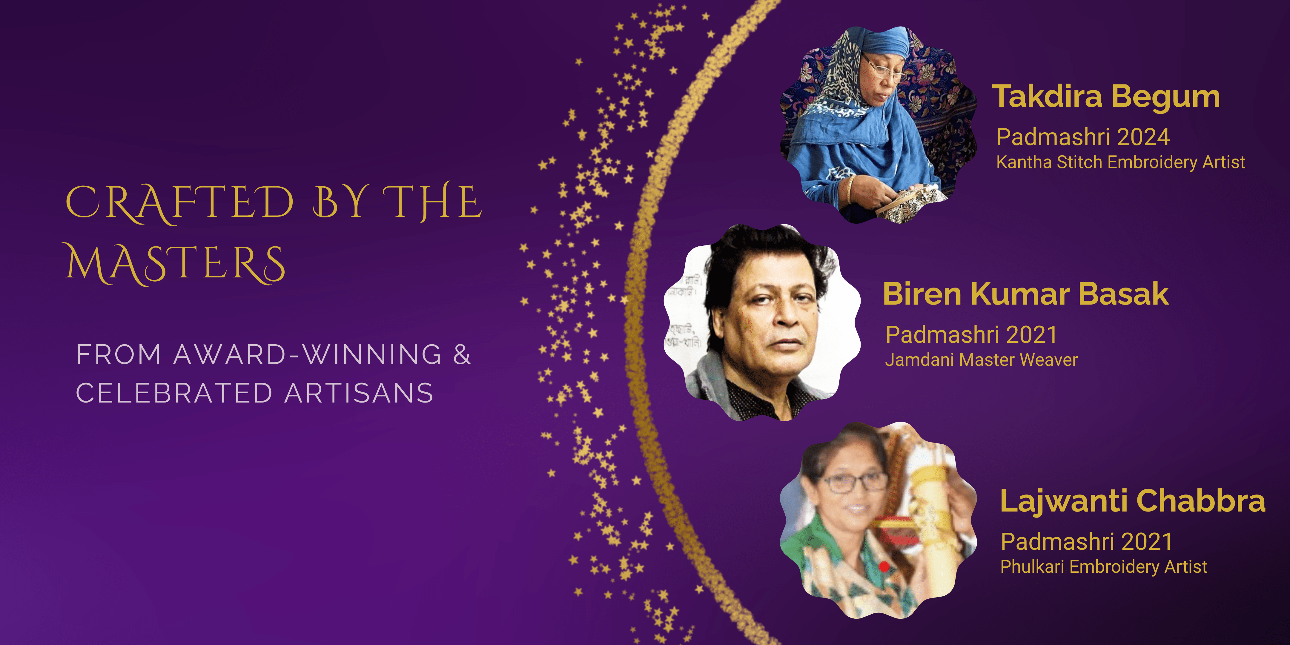 Every weave in our collection is a living masterpiece, woven by India’s most celebrated, National Award-Winning Artisans. These master craftsmen weave magic into every thread, transform tradition into art. Each of these jewels have been crafted with passion, dedication and skills, perfected and passed down through generations. Sourced directly from their looms, our sarees embody authenticity, heritage, and luxury—ensuring you drape yourself in nothing but the finest.